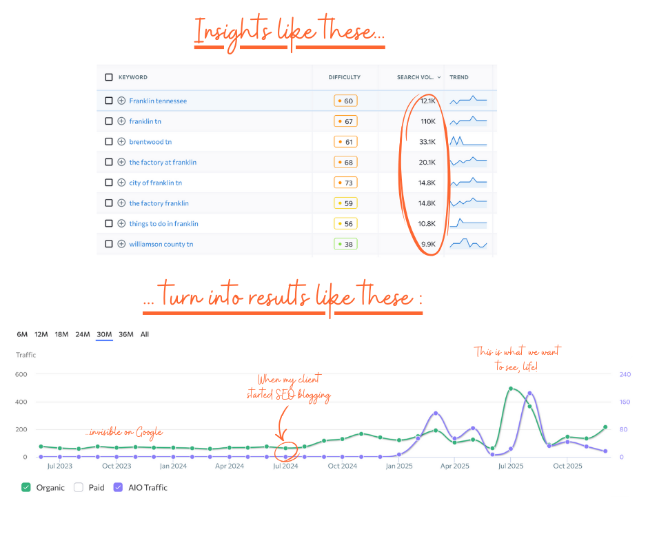 We have an in-house SEO keyword platform combined with 10+ years of organic marketing experience to find opportunities your website is missing—and get you found faster.